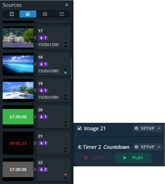 It is possible to run, pause and stop the counters directly in the source panel in Live > Screens and Live > Multiviewers.