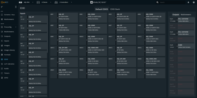 EDID is a metadata format used by displays to indicate their preferred format. A LivePremier unit receives EDIDs from connected inputs and outputs.