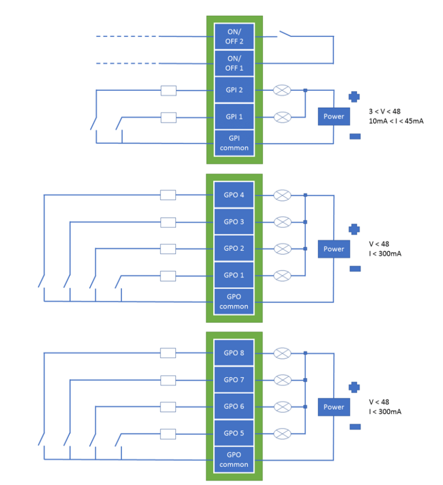 Each GPO can sink a current of up to 300mA maximum in the closed state and can accept up to 48V in the opened state.