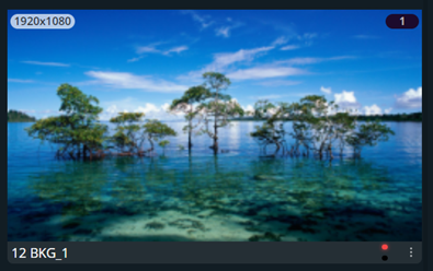 Images main screenGo to Images⚓All images presets are displayed in a Grid view.The following information is displayed per image slot: Resolution Image slot capacity Image slot number and image slot label The tallies Resolution⚓ Image slot capacity⚓ Image slot number and image slot label⚓ The tallies⚓The tallies turn red and green if the input is used in a Program and/or Preview Screen.Example : More options⚓Image slots capacities are set in Preconfig > Images.