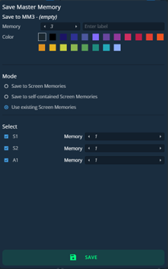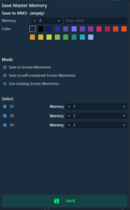 Select the Screens and Aux Screens to include/exclude from the Master Memory