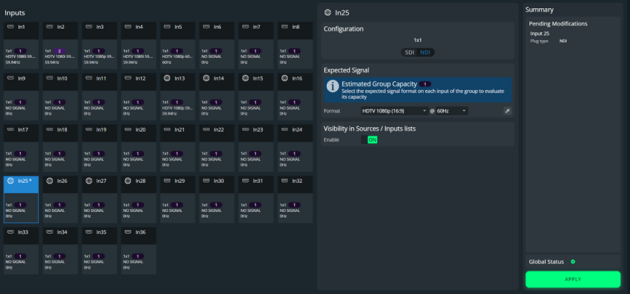 In Configuration, select an NDI plug (or SDI for 12G-SDI).