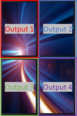 - When using output rotation on a group, rotation is set individually with each output staying in its position.